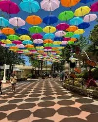 The Umbrella Sky installation on Showstreet has become one of the most photographed spots in the entire region: hundreds of colorful umbrellas suspended overhead, dappling the pathway in shifting color as you walk beneath them. It photographs beautifully and it's genuinely joyful in person.